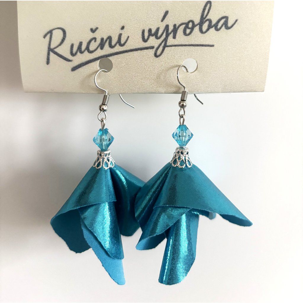 Náušnice z plavkoviny - k metalickým modrým plavkám Ruční práce